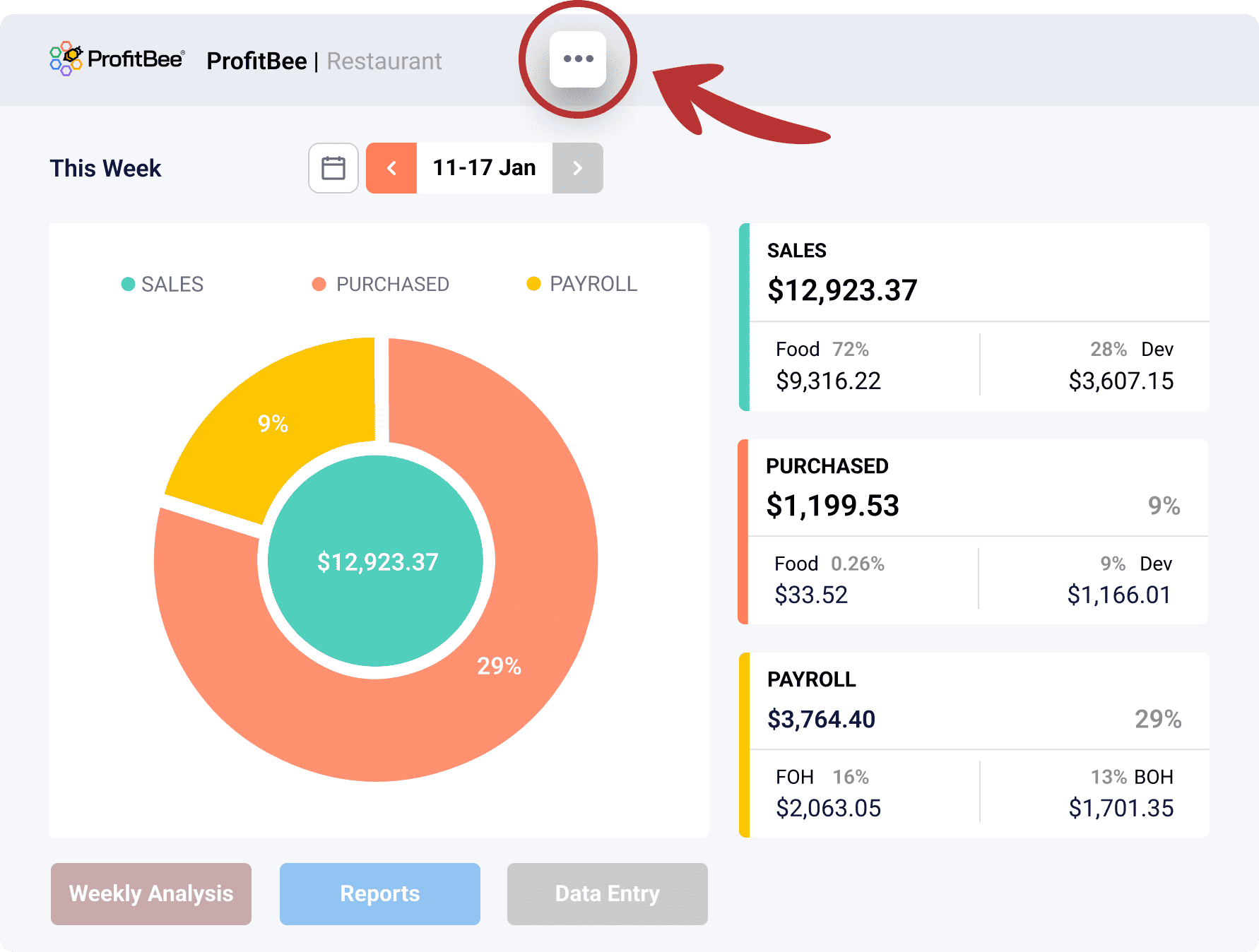 Login to your ProfitBee account and click on the top menu (3 dots)